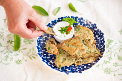 Kräuter kann man vielseitig verwenden, bei diesem Rezept werden die Blätter von verschiedenen Salbeiarten in den Teig getaucht und heraus gebacken. Dieses wundervolle Rezept ist sommerlich leicht und zum sofortigen Verzehr geeignet. Einfach von diesem Rezept inspirieren lassen und die verschiedenen Kräuter, Blätter und Blüten ausprobieren.