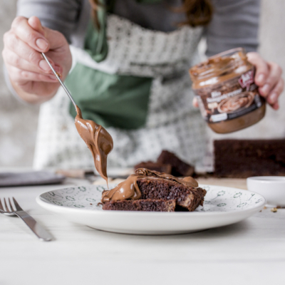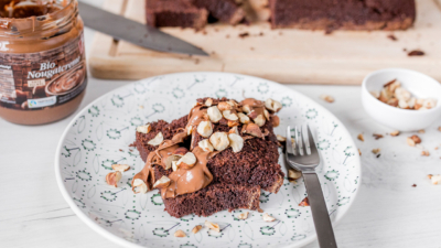8Wer mag, kann den Kuchen noch mit einigen Löffeln Ja! Natürlich Nougatcreme und gerösteten Nüssen verzieren: Haselnüsse in einer Pfanne ohne Fett bei niedriger Hitze anrösten. Einige Löffel Nougatcreme auf den Kuchen tröpfeln lassen und mit gerösteten Nüssen bestreuen. Alternativ passt auch frisches Schlagobers dazu.
