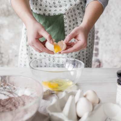3Mehl, Kakao, Natron und Backpulver vermischen.