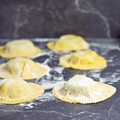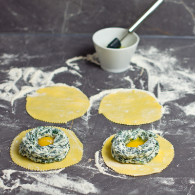 Vor ein paar Jahren war es nicht so einfach Schwarzkohl außerhalb Italiens zu finden. Mittlerweile aber trifft man ihn im Winter immer häufiger an. Zum Glück, da er eines meiner allerliebsten Wintergemüse ist. Ich habe ihn dieses Mal in Kombination mit Topfen und Bergkäse als Füllung für Ravioli verwendet. Die hier sind eher eine größere Variante, das heißt auch weniger Arbeit bei der Zubereitung. Die Füllung schmeckt würzig, herb und schön nach Schwarzkohl und der flüssige Dotter mit Nussbutter zusammen runden das Gericht ab. Nachkochen lohnt sich, denn es schmeckt großartig.