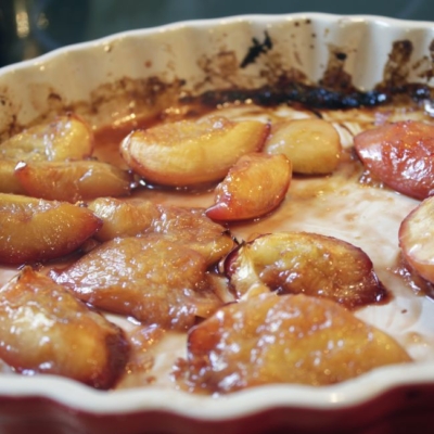 3Zirka 30min backen (abhängig von Reife und Größe der Früchte kann es schneller oder langsamer gehen), bis die Früchte weich sind leicht gebräunt. Aus dem Ofen nehmen, kalt oder warm servieren.