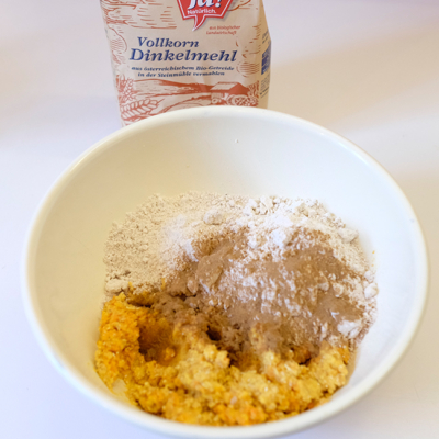 4Anschließend in eine Rührschüssel geben und das Mehl und den Zimt unterheben.