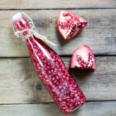 Meist macht es uns eine Frucht nicht schwer auf sein Inneres zuzugreifen. Der Granatapfel hingegen ist außen abweisend hart und innen verführerisch zart. Hinter der harten Schale verbirgt sich ein komplexes und dennoch zartes Inneres. Zahlreiche, durch feine weiße Häutchen unterteilte Kammern sind voll mit den herrlich fruchtigen Granatapfelkernen. Doch dorthin zu gelangen erscheint oft ein steiniger Weg. Nach meinem ersten kläglich gescheiterten Versuch, dem keine vernünftige Recherche voranging, sahen meine Küche und furchterregend aus. Überall waren rote Spritzer von den blutroten saftigen Granatapfelkernen. Doch der Wunsch danach von der einst verbotenen Frucht zu naschen war zu groß und so habe ich mich auf die Suche gemacht nach einem einfachen und deutlich sauberen Weg an die herrliche Frucht zu kommen. Die Lösung nennt sich Wasser: Den Granatapfel dafür vorsichtig (und am besten doch mit einer Schürze gewappnet) vierteln und dann in einer großen mit Wasser befüllten Schüssel die Kerne unter Wasser aus der Schale befreien. So gelangt man einfach und unbeschadet an die köstliche Frucht. Eine weitere Methode findet ihr unten im Video! Und weil ich nun von Granatäpfeln nicht mehr genug bekomme, stelle ich laufend Überlegungen an wozu ich diese noch genießen kann außer frisch im Müsli zu. So bin ich auf meinen Granatapfelessig bekommen, der vielen Gerichten neben feiner Säure auch eine fruchtige Süße verleiht und sich hervorragend zu Salaten kombinieren lässt.
