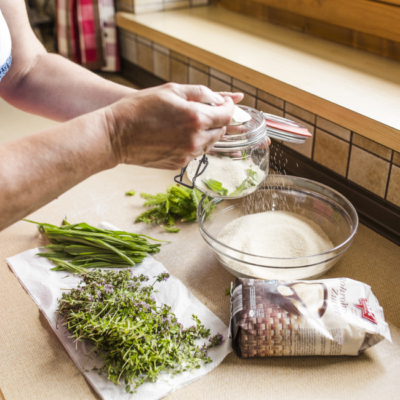 1Die einzelnen Kräuter an einem sonnigen Tag sammeln und sorgfältig abwischen und wenn nötig kurz durchwaschen.