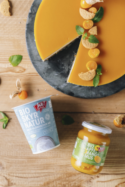 Skyr-Cake mit Apfel-Mango Fruchtspiegel