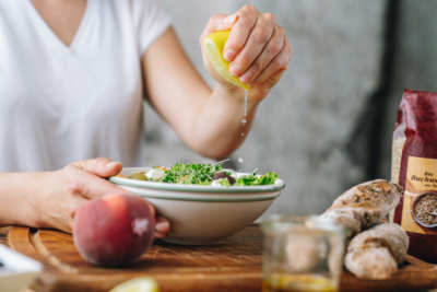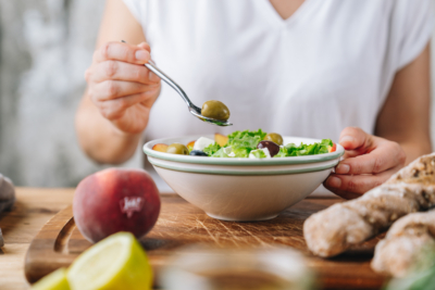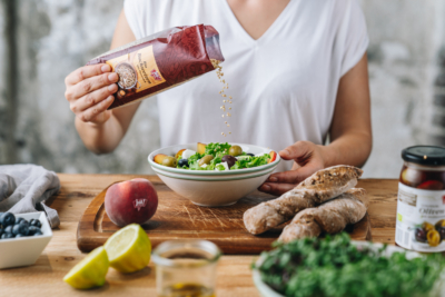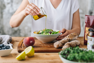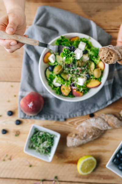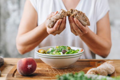Den Salat mit frischem Bio-Gebäck genießen!