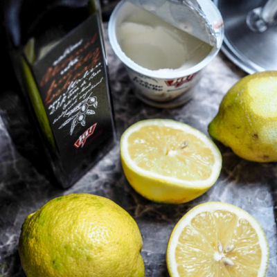 3Den Knoblauch schälen und ebenfalls grob hacken und gemeinsam mit den Haselnüssen, der Zitronenschale, dem Zitronensaft, dem Bergkäse, der Crème Fraîche und dem Olivenöl in einen elektrischen Zerkleinerer füllen und zu einem sämigen Pesto mixen. Anschließend mit Salz und Pfeffer abschmecken.