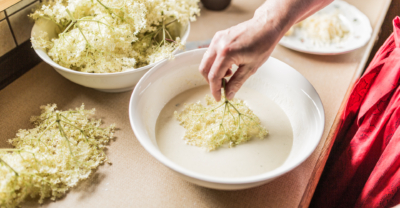 Ja, der Holunder ist es allemal wert, sich näher mit ihm zu beschäftigen. Es werden ihm erstaunliche Kräfte nachgesagt. Heißt es doch: „Vor jedem Hollerbusch sollte man den Hut ziehen“ so wertvoll und heilsam ist er. Die Blüten sind vielfältig einsetzbar in der Küche, als Mittel und in der Naturkosmetik, als Tee, Sirup, Öl, Salbe oder Essig. Den weiß gelben Blütendolden sagt man eine sehr wärmende und wohltuende Wirkung nach. Am besten erntet man die Dolden an einem sonnigen Tag, wenn die Blüten voll geöffnet sind und sie ihren wunderbaren, betörenden Duft verbreiten. Dann sind die meisten Wirkstoffe enthalten.