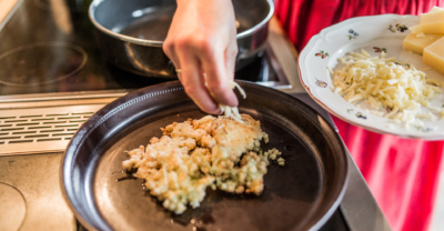 Pikante Variante: Sofort mit geriebenem Käse bestreuen und mit Salat servieren.
