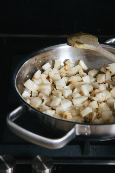 1Den Topinambur von der Schale befreien und klein würfeln.