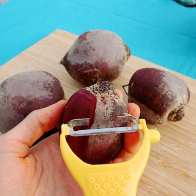 1Kürbis und Rüben waschen. Rüben mit einem Sparschäler schälen.