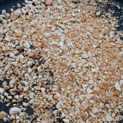 6Die übrigen Cashewkerne fein hacken und in der Pfanne rösten.