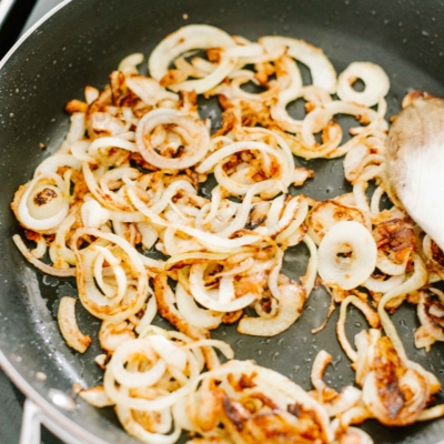 In der Zwischenzeit die Röstzwiebel zubereiten.