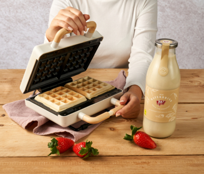 6Das Waffeleisen erhitzen, mit Pflanzenöl einfetten und die Waffeln nacheinander goldbraun ausbacken.