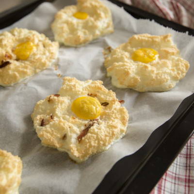 Was fällt euch noch ein? Interessant ist übrigens, dass es sich bei „Cloud Eggs“ zwar vielleicht um einen neuen Namen, bei der Technik an sich aber gar nicht um eine neue Erfindung handelt. Schon in alten französischen Kochbüchern beispielsweise findet man ähnliche Rezepte. Obwohl es damals noch kein Instagram gab, waren optisch ansprechende Gerichte immer schon ein Publikumsliebling und Eier eignen sich aufgrund ihrer einzigartigen Zusammensetzung eben hervorragend für allerlei Spielereien von süß bis pikant.