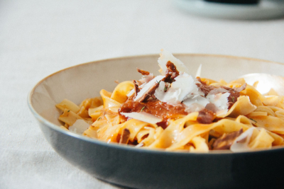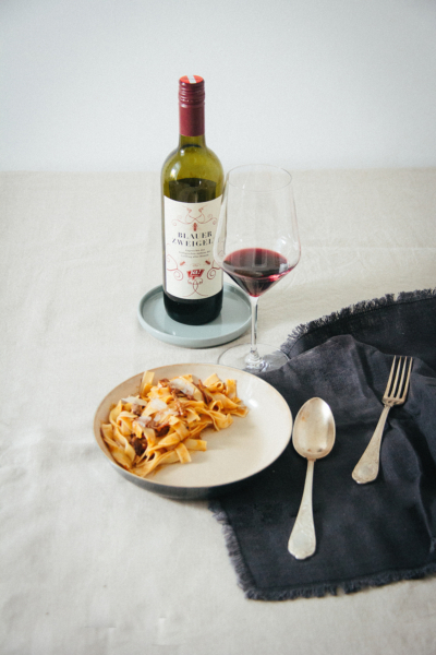 8Dazu passen Bandnudeln und etwas frischer Thymian. Am nächsten Tag schmeckt das Ragout noch besser.